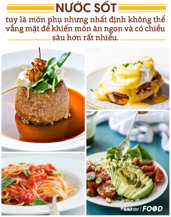 Các loại sốt thường được biết đến dưới cái tên là món ăn kèm/món ăn phụ và những tưởng như không hề quan trọng mà hóa ra khi thiếu chúng thì món ăn sẽ lạc vị ngay lập tức. Với 5 loại sốt cơ bản trên, các đầu bếp đã có một nền tảng vững vàng và từ đó cho ra đời vô vàn những loại sốt khác nhau để phù hợp với từng món ăn và khiến món ăn ngon hơn, đậm đà hơn rất nhiều. Thậm chí có những loại sốt tuyệt với đến mức khi đề cập đến món ăn đó, người ta quên mất cái tên, nhớ loáng thoáng món chính nhưng phần sốt ăn kèm lại nhớ như in từng chút một vì đã để lại một ấn tượng quá sâu sắc. Chính vì vậy, sốt tuy là món phụ nhưng nhất định không thể vắng mặt để khiến món ăn ngon và có chiều sâu hơn rất nhiều.