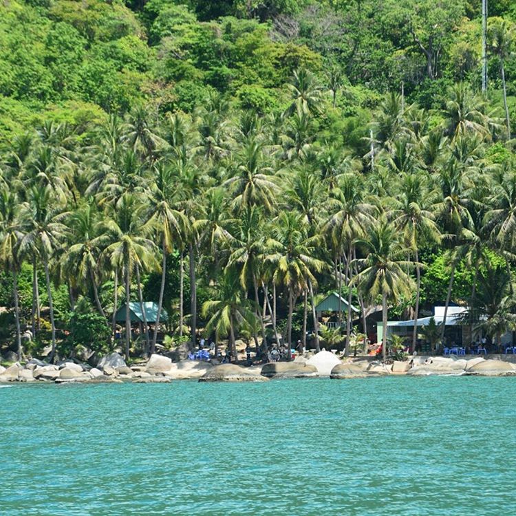 Hòn Sơn Rái còn được gọi bằng một cái tên thân quen khác là đảo dừa bởi dừa mọc từ bãi biển kéo lên tận lưng chừng đồi. Ảnh: @joannazhenng