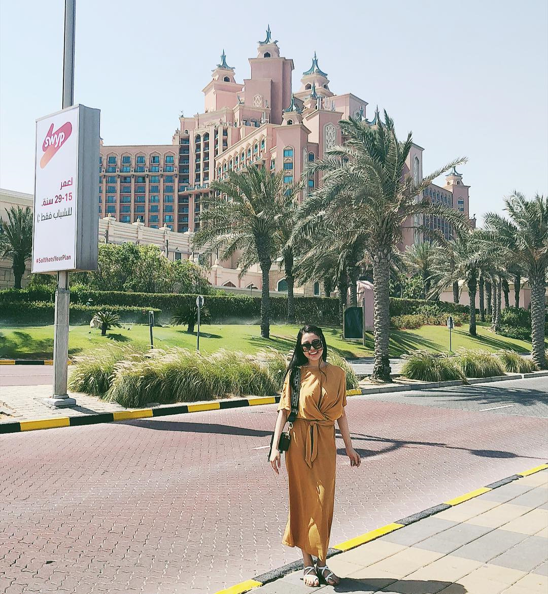 Bên cạnh những điểm du lịch nổi tiếng của Dubai, Trâm Anh cũng có những bức hình dạo phố xinh đẹp tại đây.
