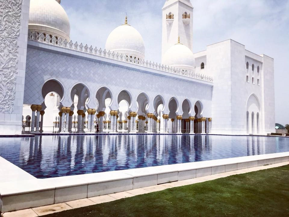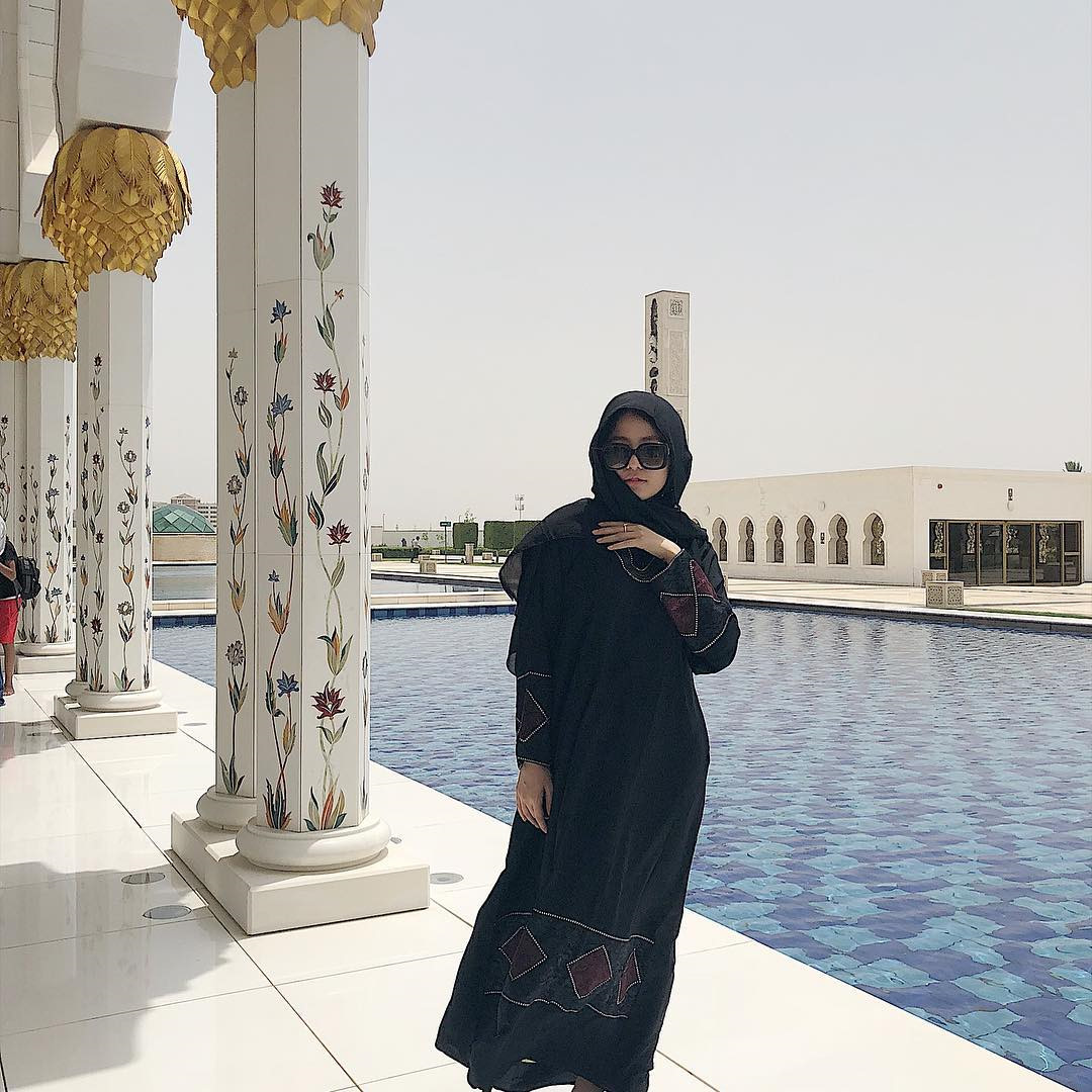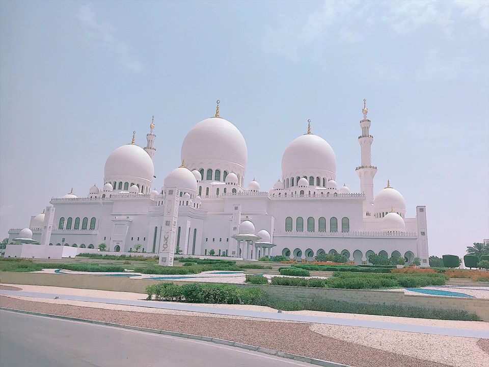 Thánh đường Sheikh Zayed thu hút Trâm Anh bởi màu trắng muốt của đá cẩm thạch. Công trình tượng trưng cho nền văn hóa Dubai khánh thành năm 2007 với tổng chi phí gần 600 triệu USD gồm 82 mái vòm và 4 ngọn tháp cao 107 m. Đây cũng là địa điểm gây được ấn tượng mạnh với hot girl bởi kiến trúc độc đáo, đẹp và tráng lệ.
