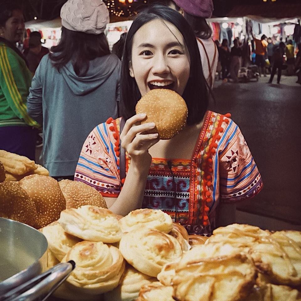 Hotgirl tỏ ra rất thích thú với món bánh tiêu, bánh mì,… ở Đà Lạt.