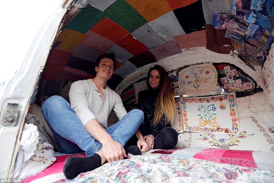 Ông cải tạo nền đất xung quanh và trải thêm tấm thảm, bên cạnh cắm một chiếc bảng khẳng định sự độc đáo của khách sạn nhỏ nhất thế giới. Trần xe được lót thêm lớp đệm dày. Thân xe được “phù phép” bằng những hình vẽ khá lạ mắt.