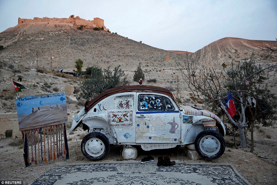 Không tuân theo bất kì nguyên tắc cứng nhắc nào, ông Mohammed Al Malaheem , một người dân địa phương ở Shoubak, Jordan, đã thổi một luồng gió mới vào ngàng kinh doanh khách sạn. Ai nói khách sạn nhất phải sang trọng, phải rộng lớn, phải theo bố cục cơ bản, người đàn ông 64 tuổi này đã “hô biến” chiếc Volkswagen Beetle cũ kĩ của mình trở thành khách sạn nhỏ nhất thế giới nằm giữa sa mạc Jordan.