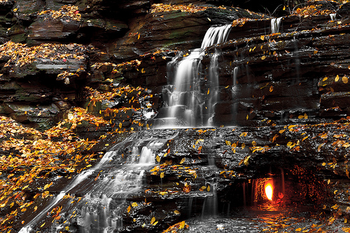 Ngọn lửa được tìm thấy sau một thác nước nhỏ tại khu bảo tồn Shale Creek, công viên Chestnut Ridge.