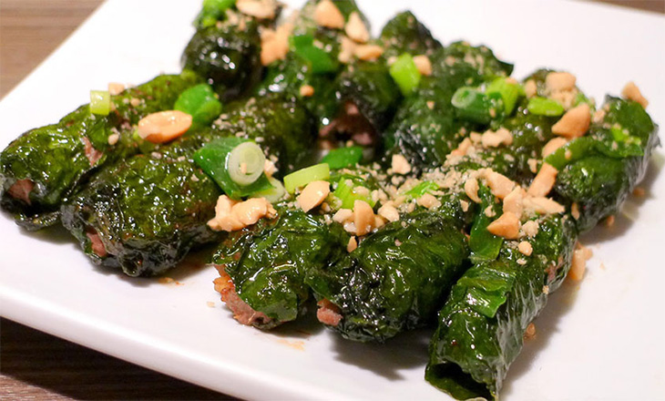 Nằm tronh top 40 món ăn ngon nhất Việt Nam được CNN travel xếp hạng và giới thiệu với bạn bè khắp năm châu. Bò lá lốp hay còn gọi là bò nước lá lốt đã dần trở thành một trong những món ăn được nhiều người biết đến và yêu thích món ăn này bởi hương vị thực sự khác biệt không lẫn với bất kì món nào. Đôi nét về món ăn có phần vừa đặc biệt lại vừa mộc mạc này, xuất phát từ nền ẩm thực đa dạng và phong phú vùng Nam Bộ, nguyên liệu chính là thịt bò và lát lốt được chế biến theo phương pháp nướng có thể kèm theo mỡ chài.