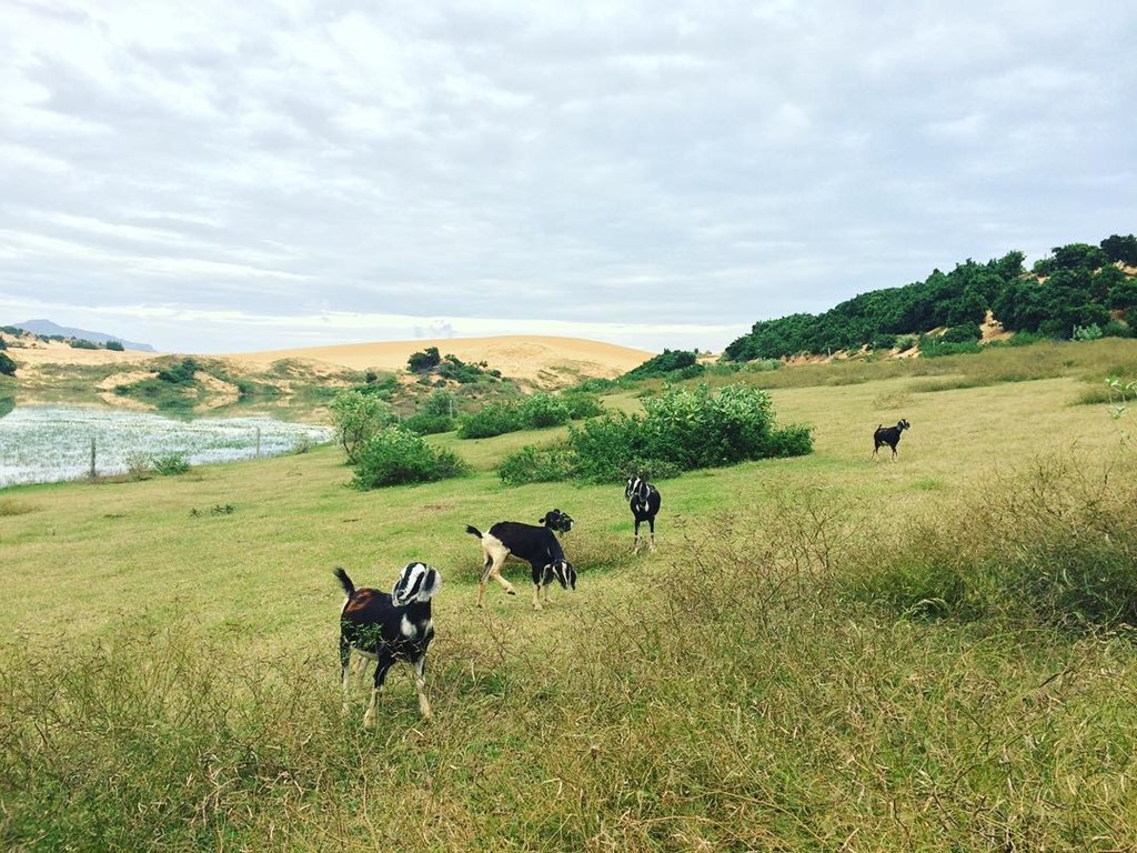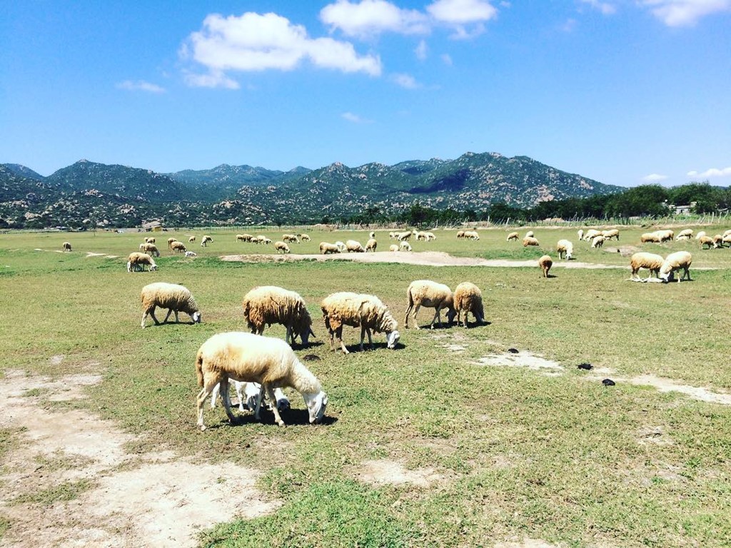 Ninh Thuận là xứ sở của dê, cừu, bò nên bạn sẽ dễ dàng gặp được chúng từ đường đi, trên các tảng đá núi hay trên trang trại đồng cỏ mênh mông. Ảnh: Mitomden.