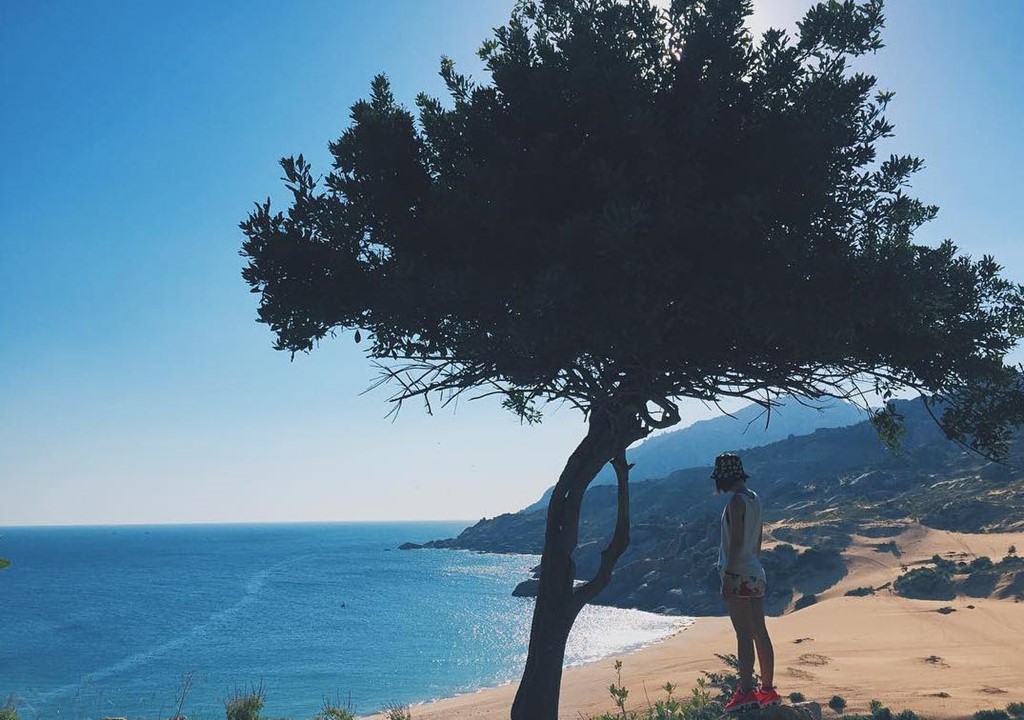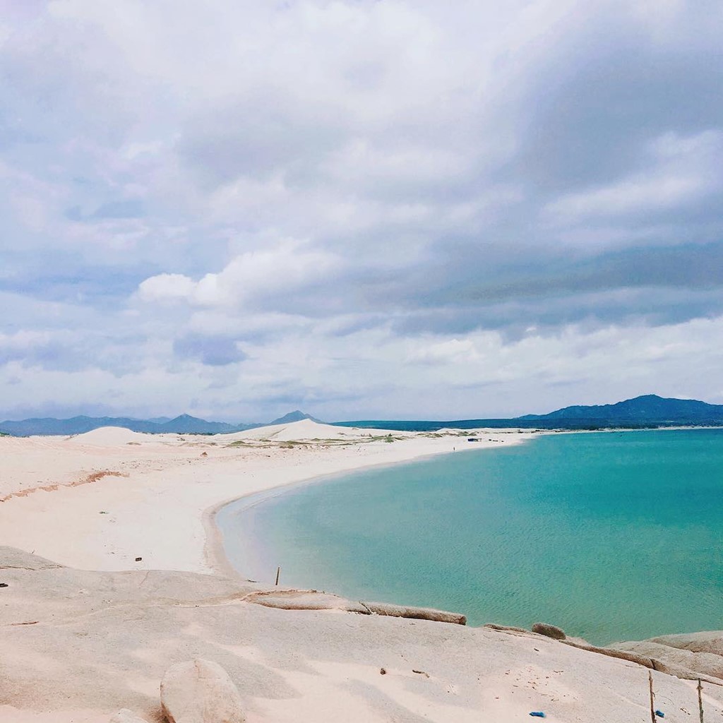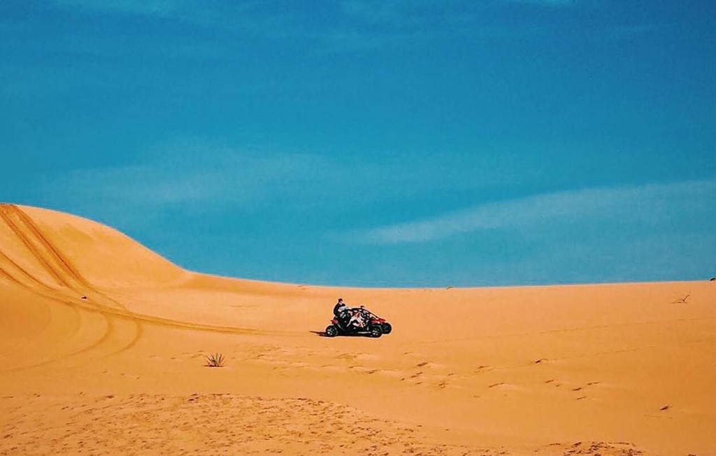 Vượt qua một sa mạc cát rộng lớn là bờ biển hoang sơ với bãi cát trắng trải dài, nước biển trong veo, xanh ngắt của thiên nhiên kì vĩ đẹp đến mê lòng. Ảnh: Tiiright.