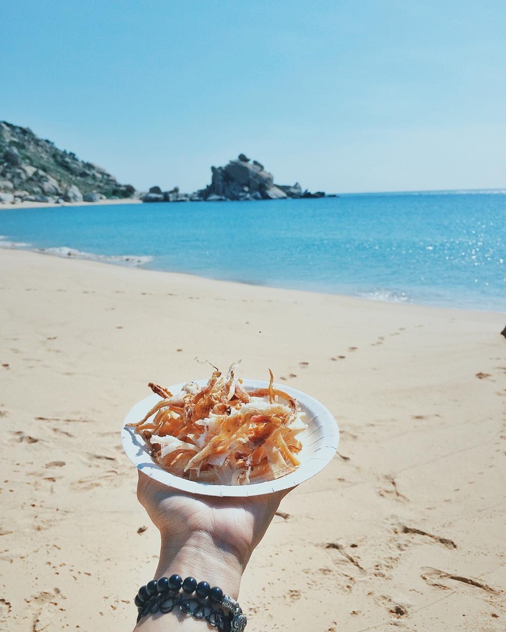 Nơi đây vô cùng vắng vẻ và yên bình, bạn có thể thoải mái tắm biển, chơi đùa rồi nghỉ ngơi thưởng thức các món đặc sản trên biển. Ảnh: Ghiendulichdotcom.