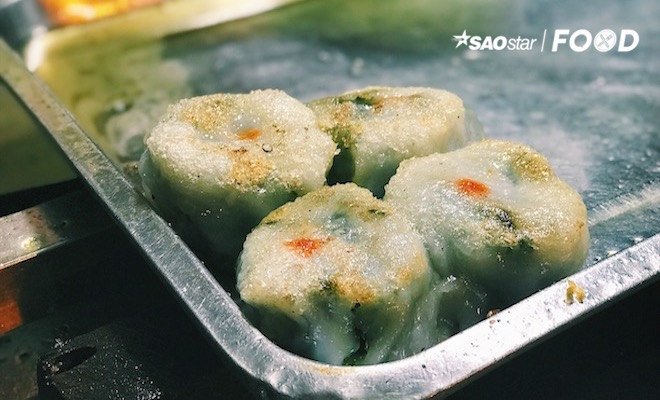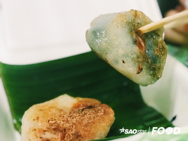 Ngoài bánh hẹ, quán còn có bánh củ sắn với phần nhân sừn sựt lạ miệng hay bánh khoai môn thì mang lại vị béo bùi đặc trưng. Ăn kèm với món là nước mắm pha loãng nên bạn cứ yên tâm chan trực tiếp lên món để thấm đều. Mỗi chiếc bánh chỉ 7.000 - 6.000 đồng nếu bạn muốn ăn cùng trứng.