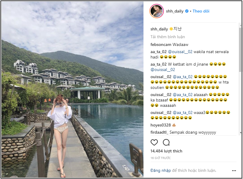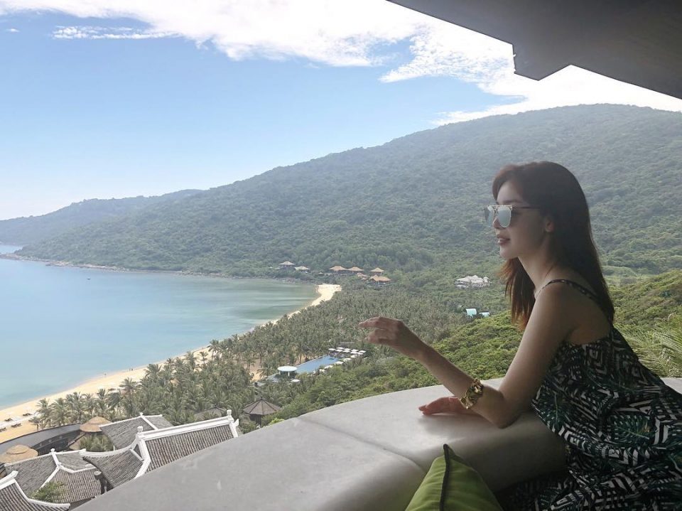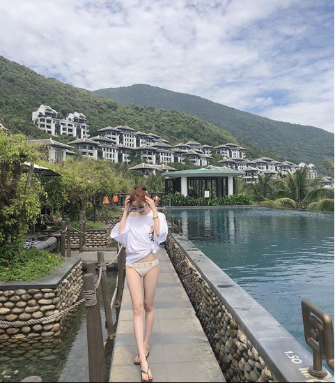 Trong bức ảnh, cô nàng đang tạo dánh khá gợi cảm ở khu nghỉ dưỡng siêu sang trọng của InterContinental Danang Sun Peninsula Resort. Moi việc sẽ không có gì nghiêm trọng nếu như một số cư dân mạng cho rằng Han Sunhwa đang diện một chiếc quần lót, và điều này thật sự không đúng đắn.