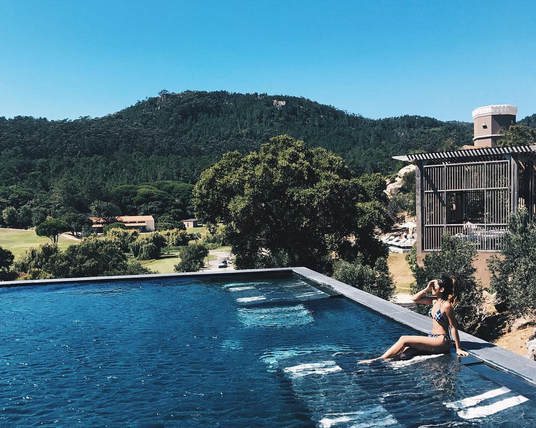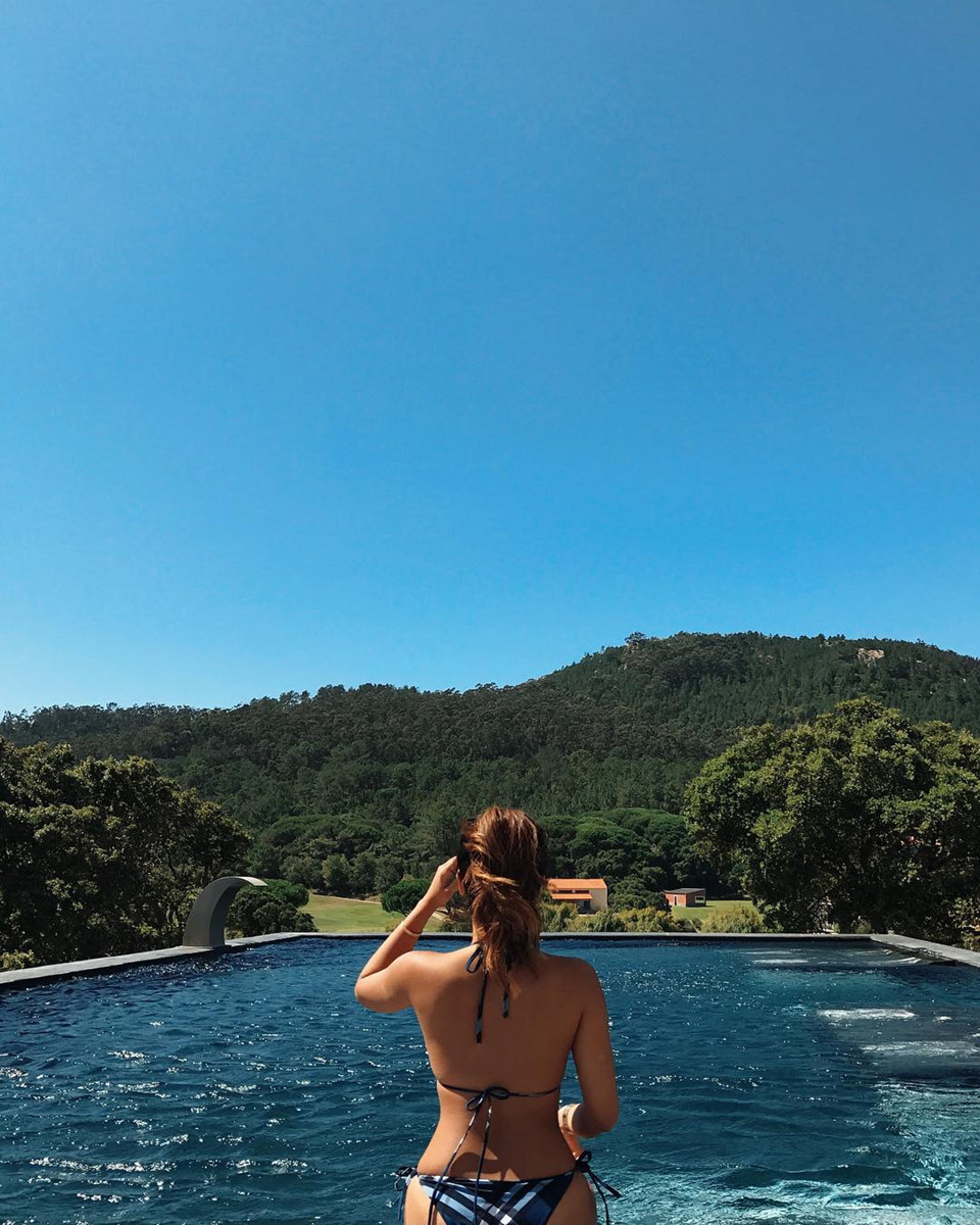 Khoe dáng giữa hồ bơi ngoài trời tại Penha Longa Resort (TP Sintra, Bồ Đào Nha.)