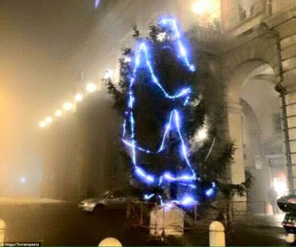 Thêm một “thảm họa” khác của mùa Giáng sinh: Cây thông sơ sài này lại được đặt ngay trước cửa Tòa thị chính Italy.
