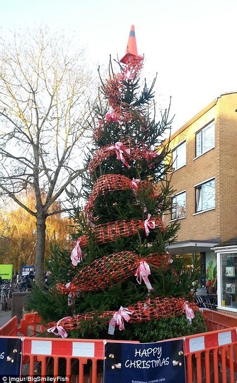 Những người dân ở Haddenham, Cambridge, Anh dường như rất hài lòng và háo hức với cây thông Giáng sinh được làm từ những ngôi sao lấp lánh.