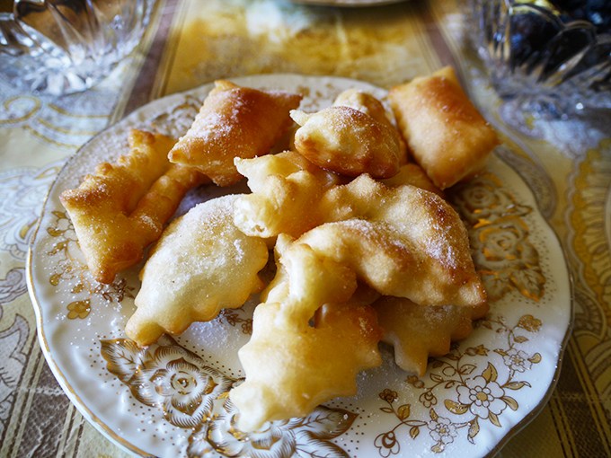Theo truyền thống, sau khi làm bánh xong, toàn bộ số bánh cùng kẹo và bánh quy sẽ được rải đều trên bàn. Sau đó một người sẽ đọc kinh Koran. Trong trường hợp người đó là góa phụ, việc đọc kinh sẽ được làm hộ bởi một người hàng xóm trẻ, vì theo phong tục thì chỉ đàn ông hay phụ nữ đã kết hôn mới được đọc kinh.