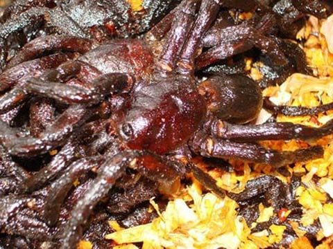 Tại Campuchia, do trong quá khứ đối mặt với tình trạng thiếu thốn lương thực trầm trọng, người dân phải tận dụng nhện và côn trùng làm đồ ăn. Từ đó xuất hiện món nhện chiên giòn hết sức đặc biệt.