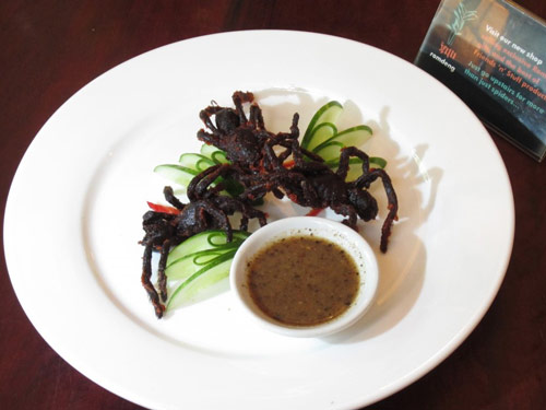 Nhện chiên cũng được xem là món “mồi” ngon của các quý ông Campuchia. Chỉ cần một đĩa nhện chiên, nhấp nháp chút bia lạnh hoặc vài chén rượu gạo thì không gì có thể sánh bằng.
