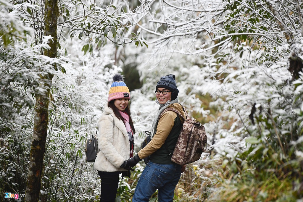 Không chỉ du khách, người dân địa phương cũng tỏ ra thích thú khi thấy tuyết rơi. Ảnh: Hoàng Hà.
