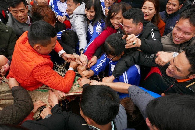 Cảnh tranh cướp diễn ra quyết liệt. Ai cũng muốn lấy được một vài cọng chiếu với hy vọng sẽ có được tài lộc, con cái. Ảnh: Quý Đoàn