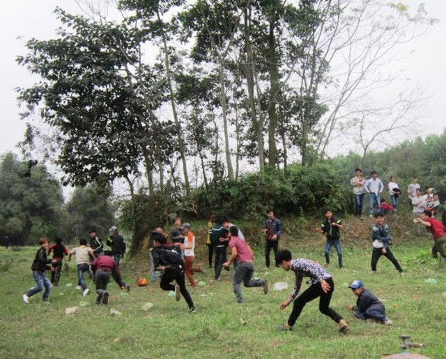 Độc đáo ở phiên chợ chuộng là ném nhau để cầu bình an, may mắn. Ảnh: Nguyễn Thùy