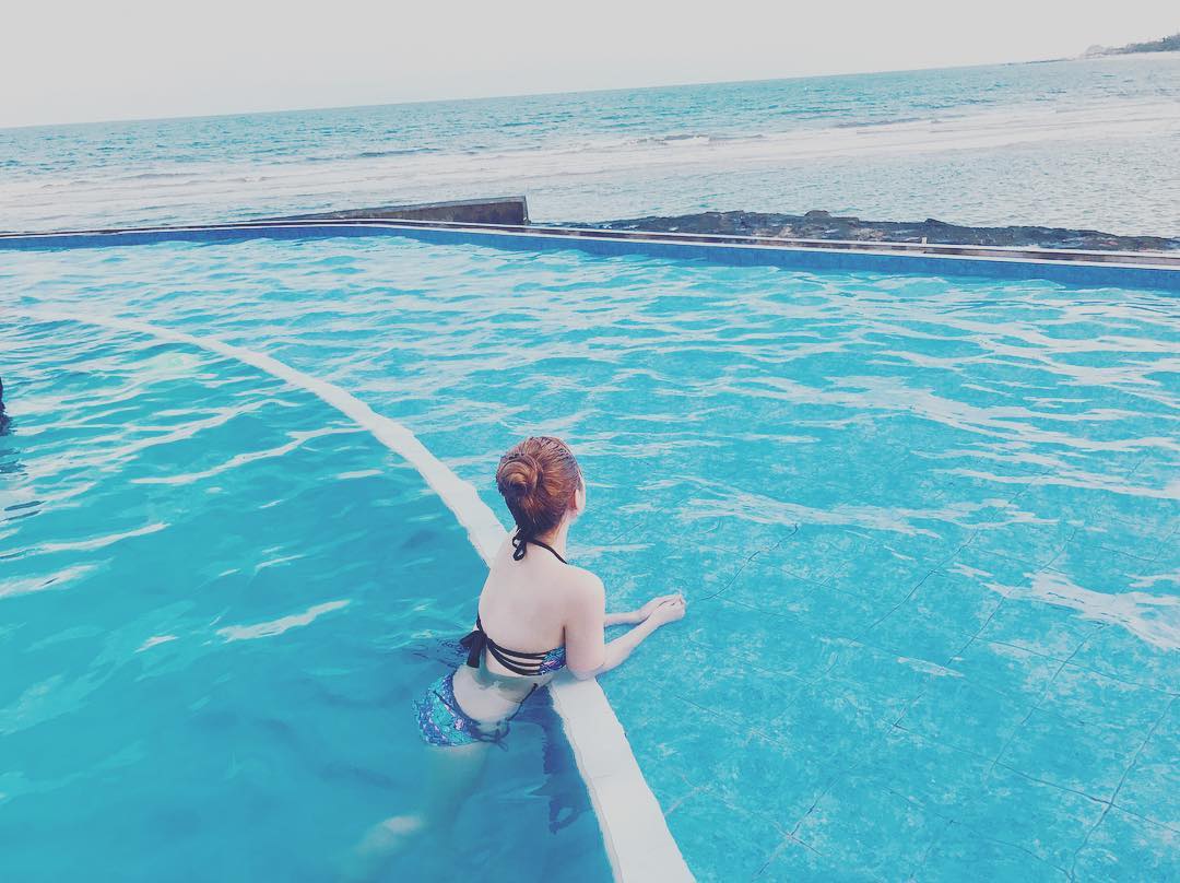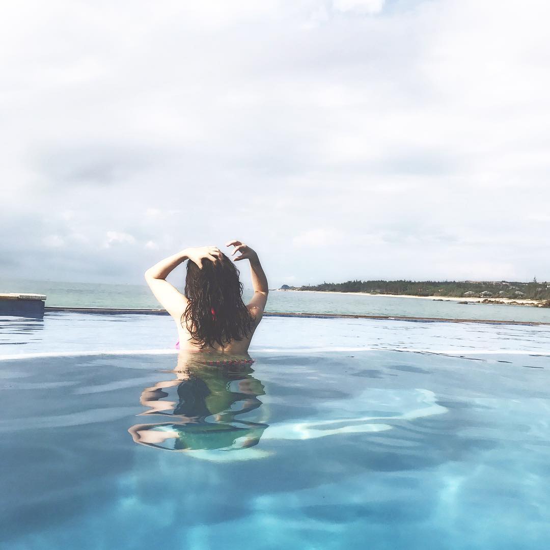 Cận cảnh hồ bơi lộ thiên sát biển của resort. Ảnh: FBNV