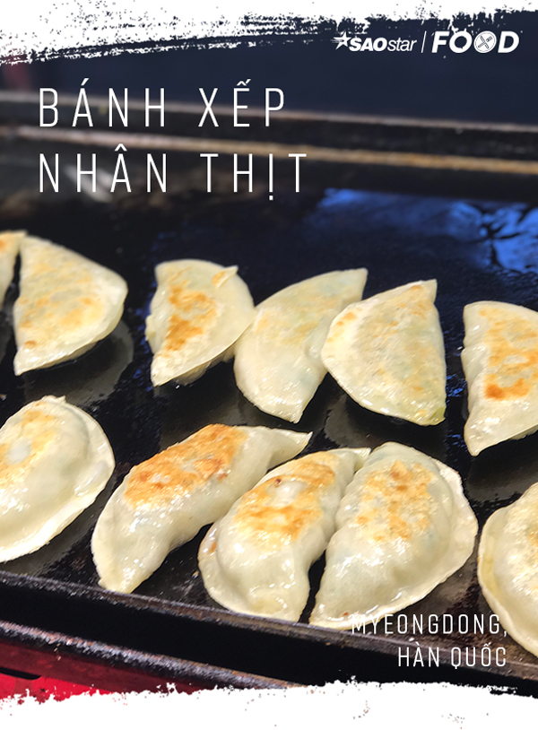 Rồi những chiếc bánh xếp mềm mại cuộn nhân miến và thịt xay lúc nào cũng nóng hổi trên chảo, bánh này cũng là một trong những gương mặt tiêu biểu của ẩm thực đường phố Hàn Quốc.