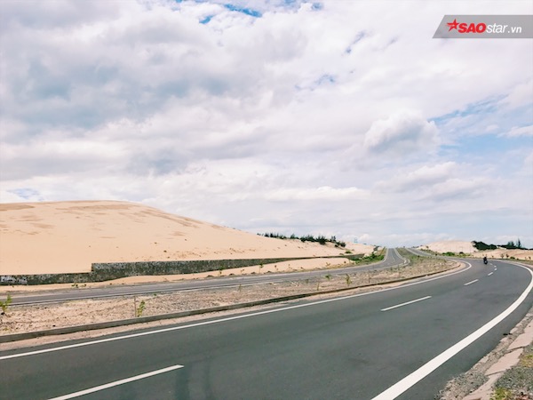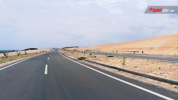 Còn đường trán nhựa bằng phẳng, chạy dài thẳng tắp nhưng đôi khi lại uốn mình quanh co rồi ôm lấy đồi cát tạo nên những đường cong tuyệt đẹp. Hoà mình cùng những làn gió mát rượi, chiếc xe cứ thế lăn đều như thể đang thách thức sự hùng vĩ của thiên nhiên.