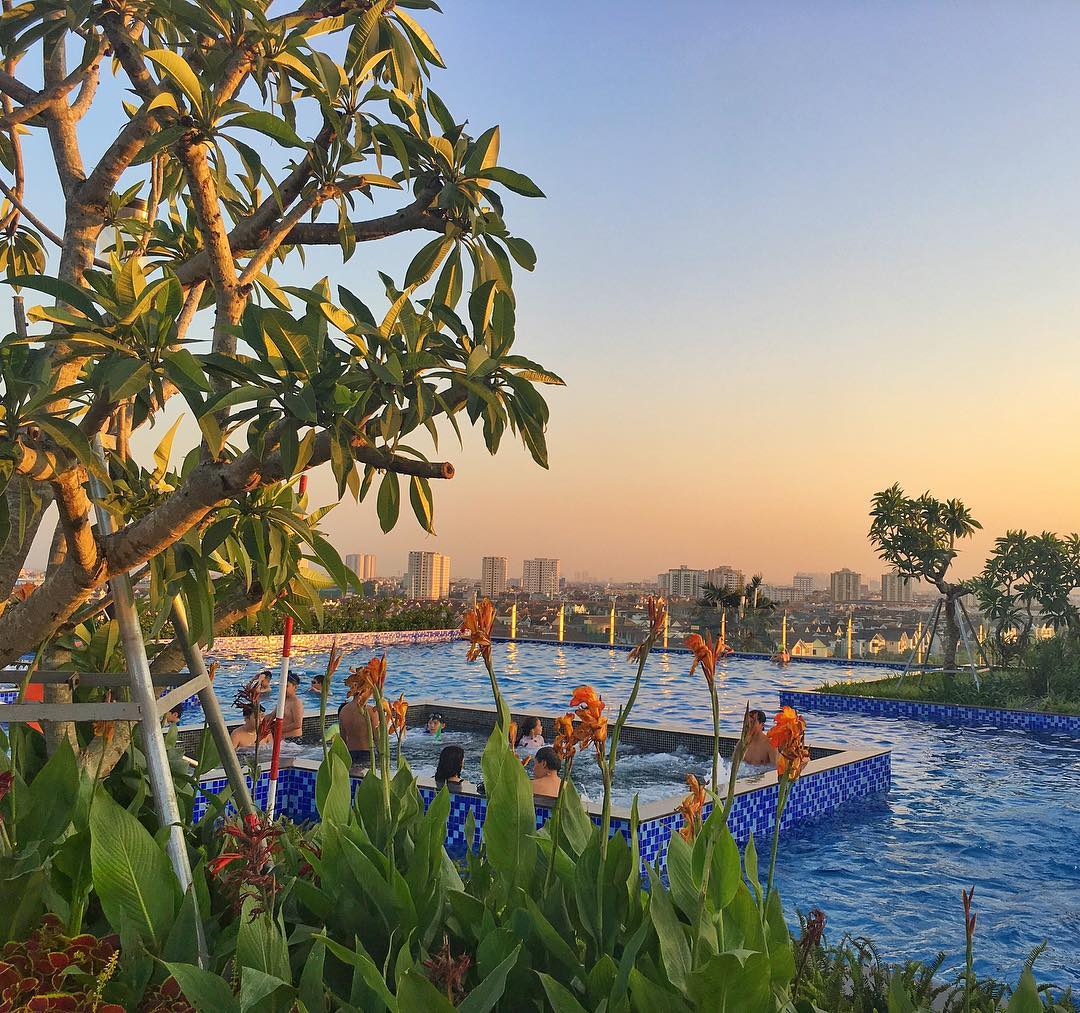 Đây chắc chắn là một trong địa điểm check-in vô cùng thích hợp dành cho mùa hè này. Còn chần chờ gì nữa mà không sắp xếp lên kế hoạch đi thăm thú bể bơi ấn tượng này nhỉ. Được biết, bể bơi vô cực ở đây chỉ giới hạn cho cư dân khu đô thị, nhưng bạn vẫn có thể trải nghiệm được trọn vẹn khi đi cùng bạn bè hoặc người quen đang sinh sống tại đây với mức vé 100.000 đồng/người.