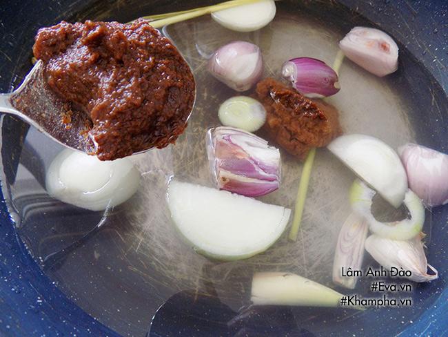 Nước me sôi khoảng 5-7 phút thì cho hết sả, hành lá và vài khoanh ớt sừng vào. Nếm lại xem vị chua ngọt vừa miệng thì tắt bếp.