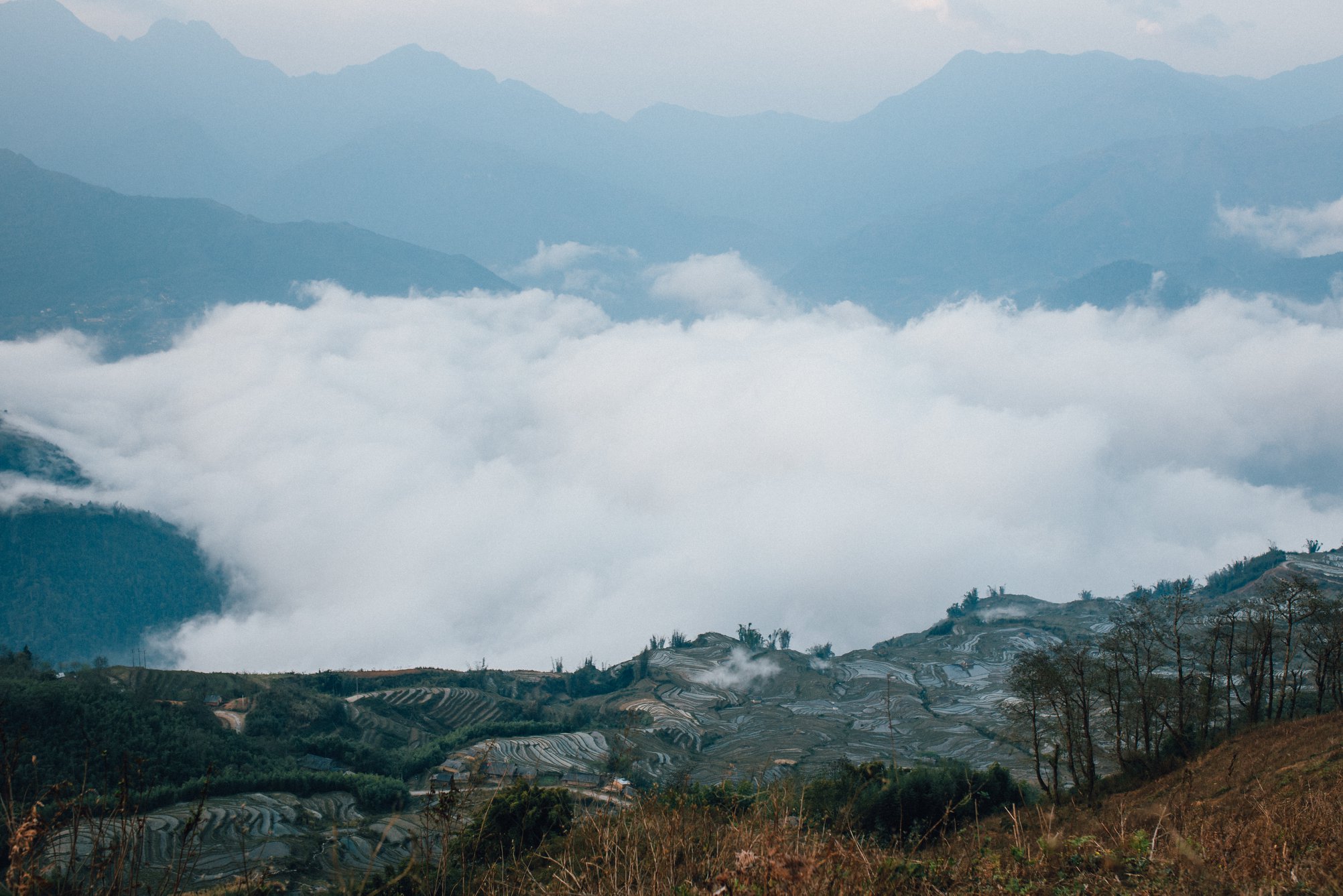Thế nhưng khi lớp mây dần tan khi nắng lên thì khung cảnh nơi đây còn lại là k thung lũng trải rộng với những ruộng bậc thang uốn cong đẹp mê ly.
