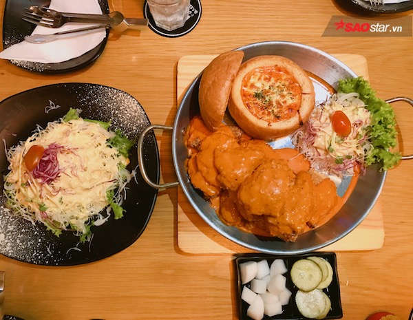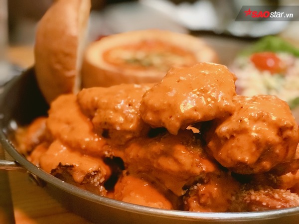 Bất kì ai đến quán đều phải gọi bằng được món Gà cà ri phô mai - món đặc trưng và làm nên tên tuổi cho nhà hàng này. Không giống như những chảo gà cay phô mai mà chúng ta đã phát ngán, món ăn này đã làm mới khẩu vị của mọi thực khách.