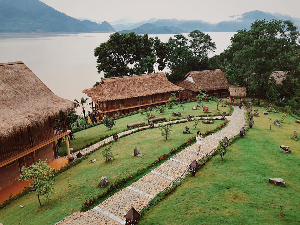 Đây là khu nghỉ dưỡng sinh thái duy nhất nằm ở lòng hồ Hòa Bình. Các bạn có thể cảm nhận được sự tự do, yên tĩnh và thư giãn nhờ mảng xanh rộng lớn - đó là sắc xanh của thiên nhiên mở với hồ, cây và không gian của núi rừng nơi đây.