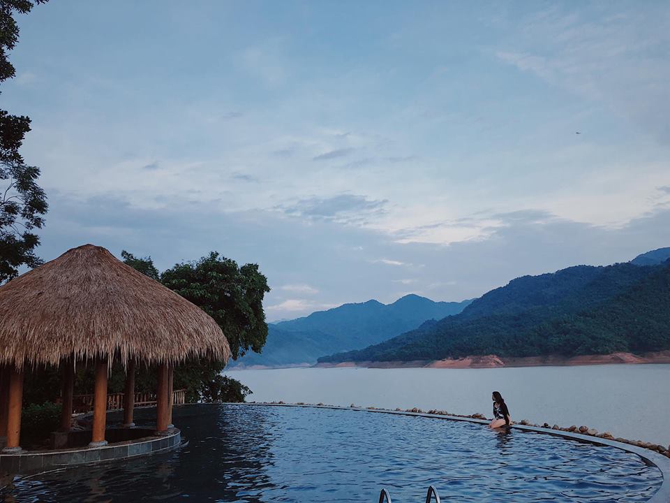 Điểm đắt giá nhất mà bạn không thể bỏ qua đó chính là hồ bơi vô cực sát mép hồ Hòa Bình được xây dựng và trang trí bằng đá tự nhiên. Đây là địa điểm lí tưởng để các bạn tận hưởng ánh nắng mặt trời cùng với tầm nhìn tuyệt vời ra hồ nước trong xanh để thư giãn và có các pô hình sống ảo siêu đẹp.