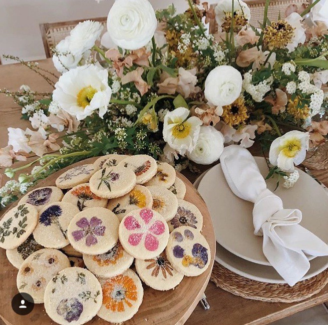 Lori chia sẻ trên trên trang cá nhân instagram của mình rằng nguyên liệu trang trí cho những chiếc bánh quy thường là những được hái từ hoa cúc dại, hoa đỗ biếc hay hoa pansy… Bởi những bông hoa này mang có hương thơm nhẹ nhàng và mang màu sắc rực rỡ.