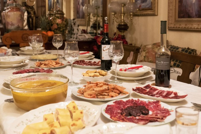 Hải sản là món ăn truyền thống của người Tây Ban Nha trong đêm Noel. Bên cạnh đó, còn có món kẹo truyền thống Turrón, hay còn gọi là kẹo hạnh phúc. Tuy vậy, ngày nay, các món ăn truyền thống đã có chút thay đổi khi họ dần chuyển sang ăn gà tây nướng.