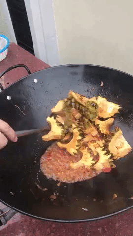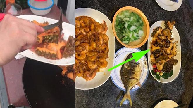 Thời gian gần đây, rất nhiều fanpage Việt đang chia sẻ đoạn clip ghi lại cảnh chế biến một món ăn với nguyên liệu từ vỏ sầu riêng. Trong đoạn clip, người đầu bếp đun sôi dầu, bỏ những miếng vỏ sầu riêng đã được cắt nhỏ vào chảo sâu lòng, đảo với lửa lớn, sau đó lần lượt cho ớt, gia vị, nước tương và trút ra đĩa như một món ăn bình thường.