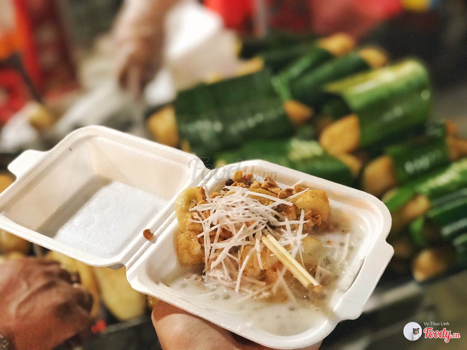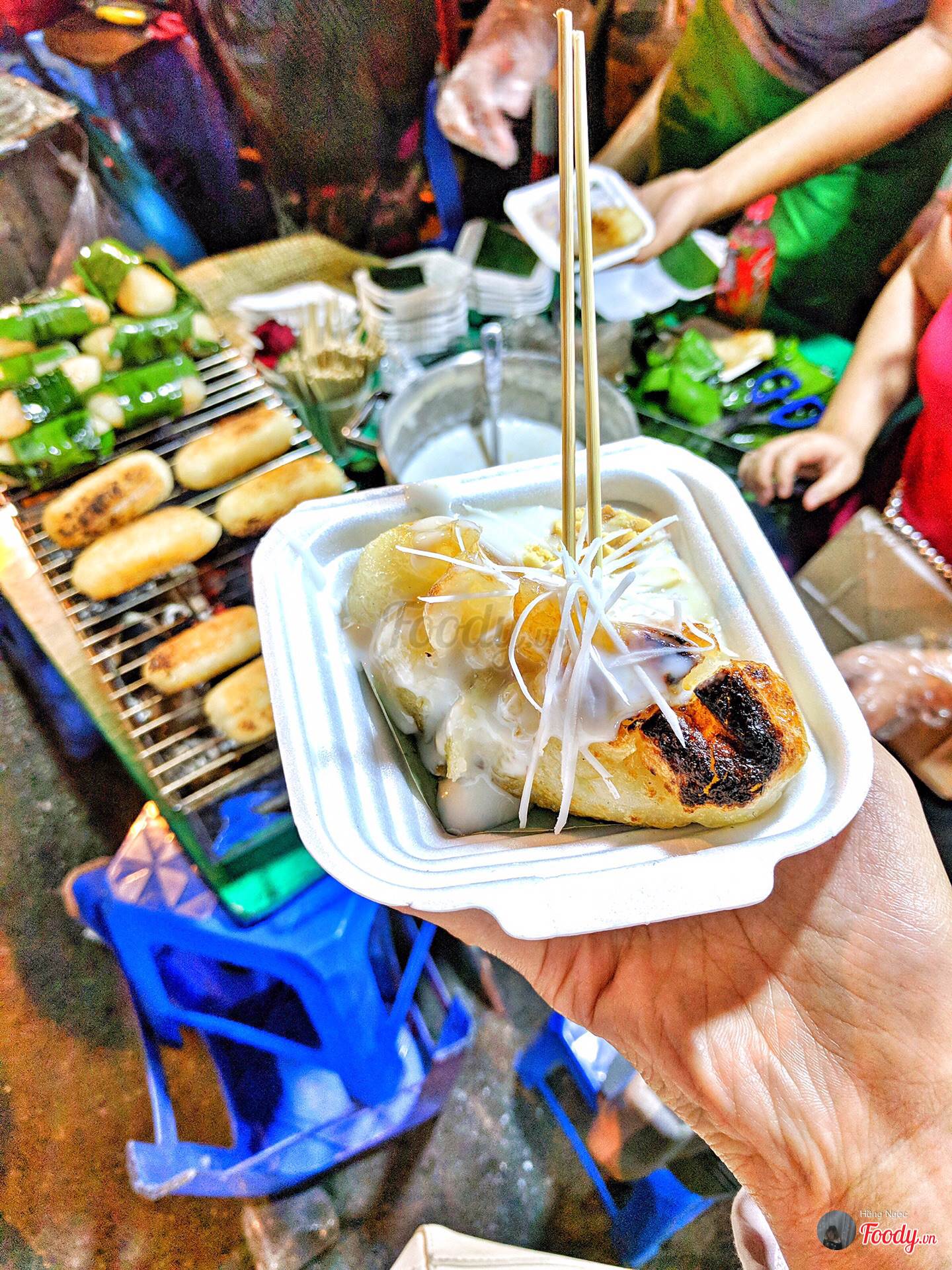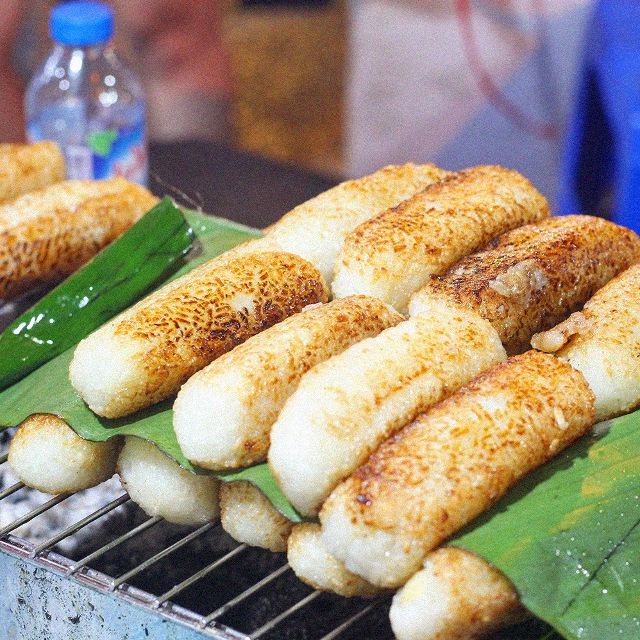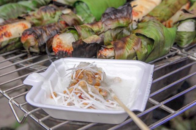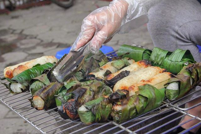 Giá 1 suất chuối bọc nếp nướng bán tại chợ đêm (Hà Nội) khoảng 20-25K.
