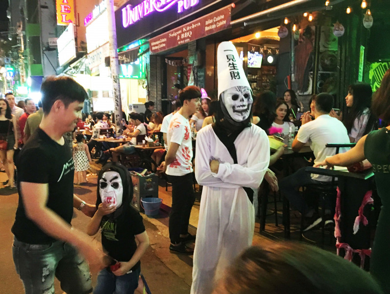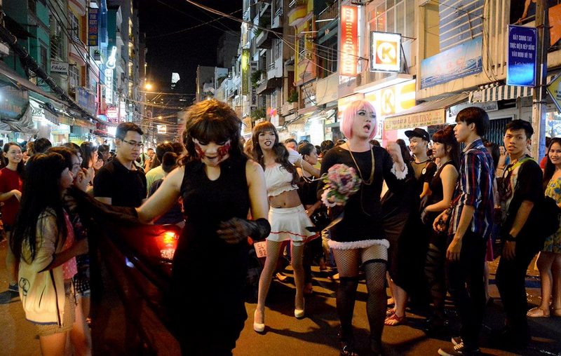 Không chỉ Halloween mà hầu hết các ngày lễ, con phố Bùi Viện luôn là địa điểm được nhiều người nhớ tới bởi sự náo nhiệt của nó. Đặc biệt hơn, nơi đây thu hút nhiều khách du lịch nước ngoài nên dịp Halloween sẽ được trang hoàng lộng lẫy và có những hoạt động thú vị hơn cả.