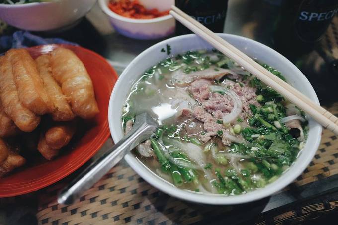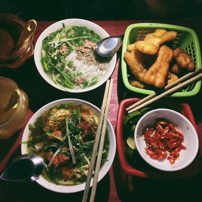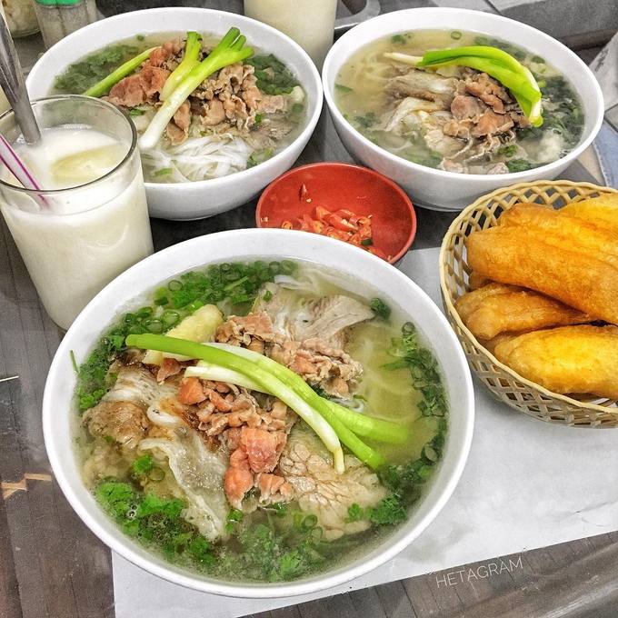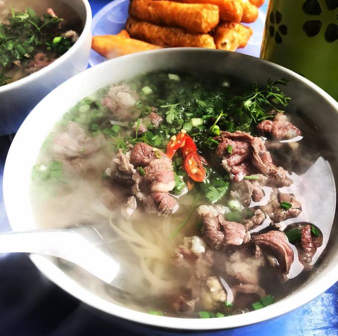 Quán ăn nằm ở số 3 Trần Phú, ngay trước là đường tàu đi qua nên từ lâu được biết đến với tên gọi phở bò đường tàu. Ở đây chuyên phở bò với đủ loại sốt vang, tái gầu, tái chín, tuy không thật sự đặc sắc nhưng giữ được hương vị xưa, giá 45.000 đồng/tô. Quán có ưu điểm mở từ sáng đến đêm muộn, thậm chí tới 4h sáng hôm sau. Tết này quán mở lại từ trưa mùng 2 tháng Giêng âm lịch. Ảnh: Scarlife.b