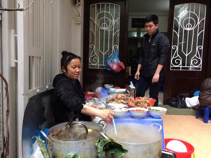 Dù thái độ của chủ quán làm mất lòng nhiều người, quán chẳng mấy khi vắng khách. Năm nay quán nhỏ nằm trong ngõ Trung Yên mở lại từ mùng 6 Tết. Bát bún có giá 40.000 đồng, đầy đặn với ngan, măng, mọc, nước dùng thanh ngọt. Ngõ vào nhỏ nên khách phải gửi xe ở ngoài, giá 5.000 đồng. Ảnh: Vy An.