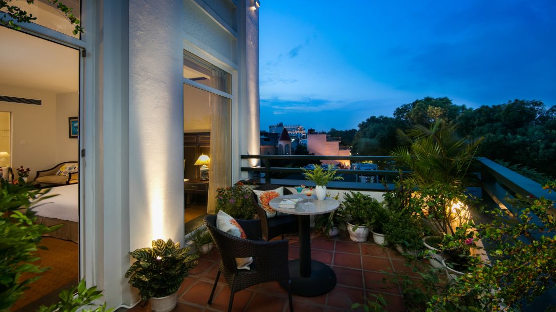 Phong cách Indo- Pháp tiếp tục là phong cách nội thất chủ đạo trong các căn phòng, với đồ nội thất cổ điển, khăn trải giường bằng lụa, cửa chớp xanh lá cây và các chi tiết bằng sắt rèn.