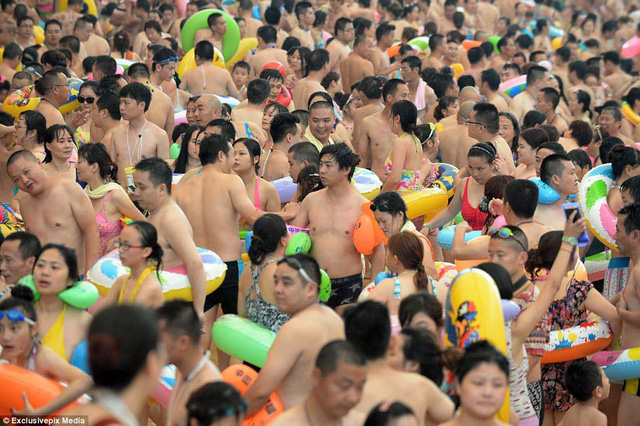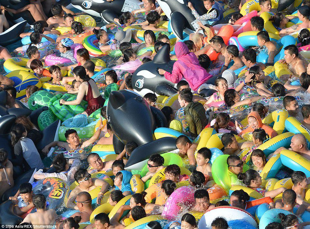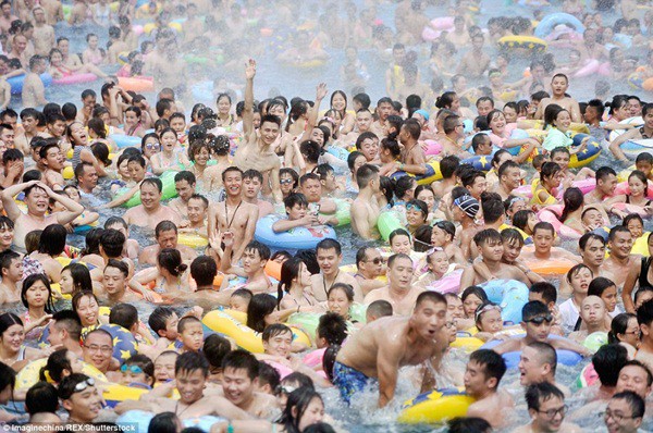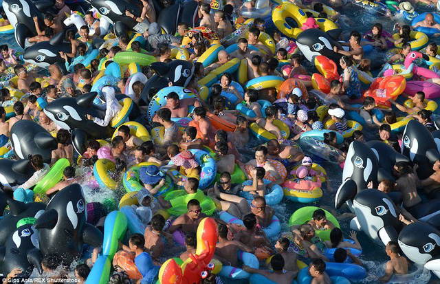 Một số hình ảnh tại các hồ bơi ở Trung Quốc trong mùa cao điểm: