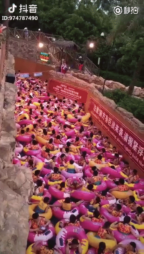Trong đoạn video ngắn kéo dài hơn 6 giây, người ta có thể thấy đó là một hồ bơi được thiết kế như dòng sông lười ở công viên nước. Nhưng điều đáng nói ở chỗ, hàng trăm người chen chúc cùng lúc khiến nơi này trở nên quá tải. Do quá chật hẹp nên không du khách nào có thể bơi xa quá phạm vi bên trong chiếc phao của mình.