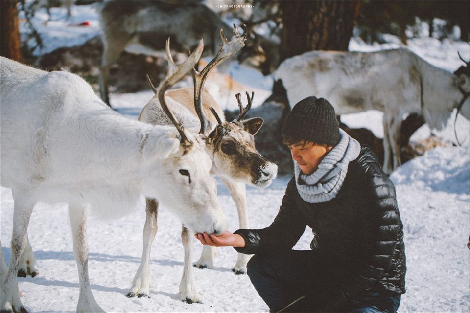 Từ Tsagaan Nuur - ngôi làng cuối cùng ở phía Bắc, anh và những người bạn đồng hành đã cưỡi trên lưng tuần lộc gần 6-7 ngày trời, băng qua đồi núi rồi các sông hồ đóng băng, ngủ trên nền tuyết trong những chiếc yurts (lều dã chiến của người Tsataan) với những đêm nhiệt độ xuống đến -35 độ C, ăn uống tạm bợ thiếu thốn, để cuối cùng đến được nơi cách biên giới Nga khoảng 40km.