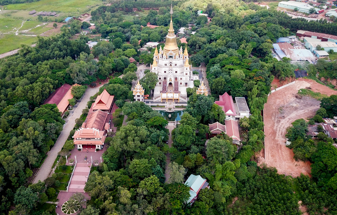 Điểm nhấn của ngôi chùa là Bảo tháp Gotama Cetiya xây từ năm 2007, hoàn thành sau 6 năm. Bảo tháp là nơi thờ xá lợi Phật và các Chư Thánh Tăng. Bảo tháp rộng trên 2.000 m2, cao 70 m, được xây dựng theo nét của văn hóa Phù Nam. Xung quanh là các tháp nhỏ, đều làm bằng đồng, có màu vàng óng.