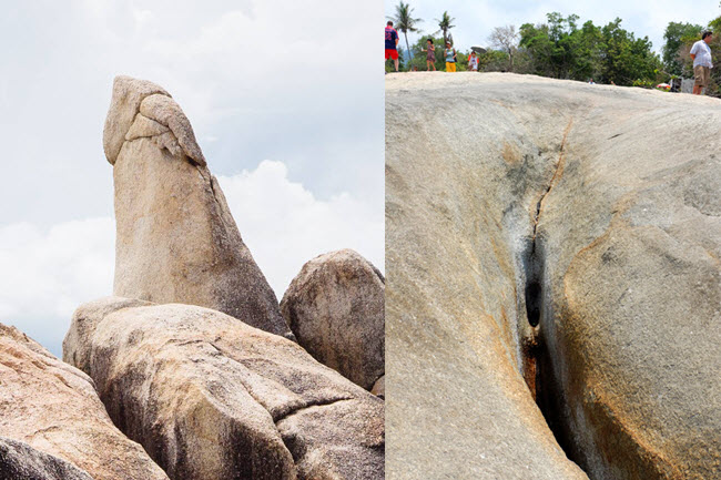 Hin Ta và Hin Yai là hai cấu trúc đá ấn tượng nhất trên hòn đảo Koh Samui, Thái Lan. Kỳ quan thiên nhiên này được người dân địa phương phát hiện cách đây nhiều năm và lần lượt gọi chúng là hòn ông và hòn bà vì có hình dạng giống cơ quan sinh dục của đàn ông và phụ nữ.
