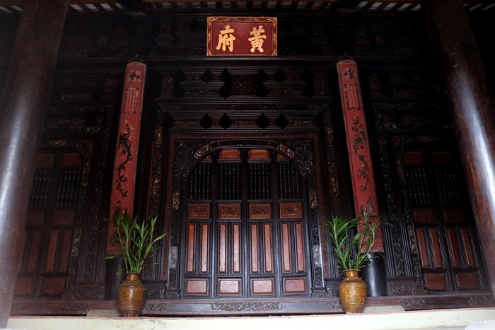 Vào sâu hơn, nơi đây là không gian thờ cúng tổ tiên. Bàn thờ tổ tiên được đặt trang trọng giữa nhà. Đây được xem là đỉnh cao của nghệ thuật chạm khắc. Tất cả những phiến gỗ bàn thờ đều được chạm trổ tỉ mỉ và sơn son thếp vàng.