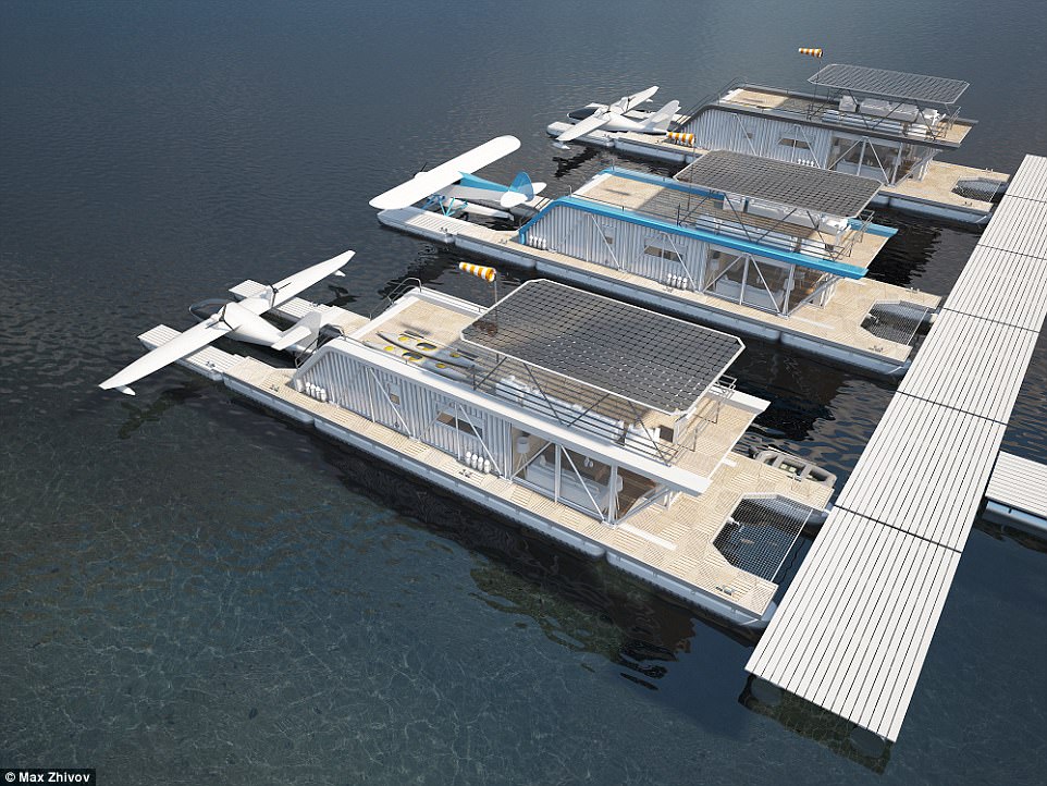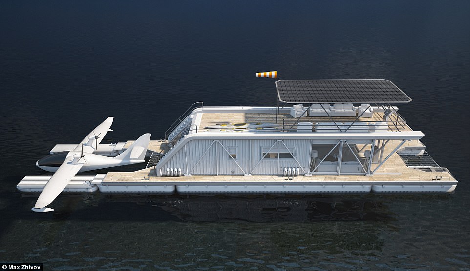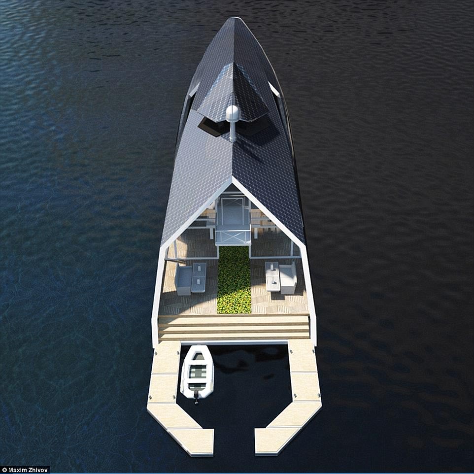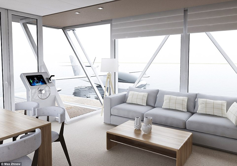 Kiến trúc sư hải quân người Nga Maxim Zhivov mới đây giới thiệu thiết kế nhà thuyền sang trọng mang tên HydroHouse, dài 15m, có cả chỗ đỗ xe dành cho máy bay. Căn nhà này còn có thể dùng làm bến đỗ cho tàu thuyền.