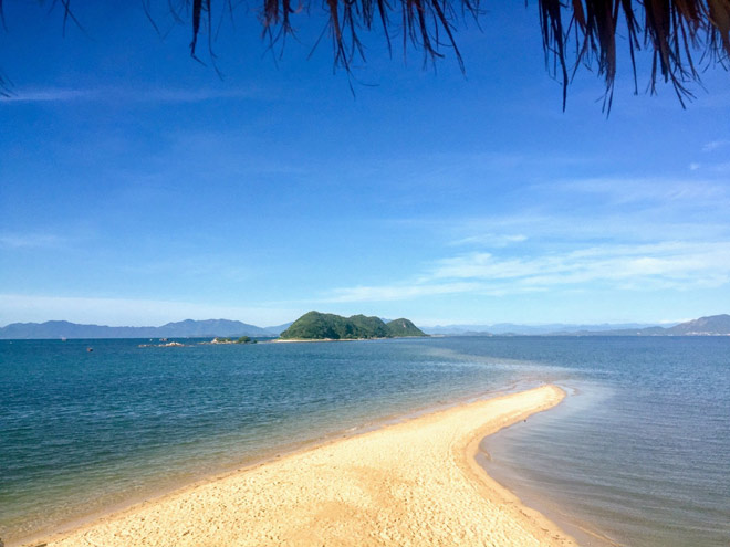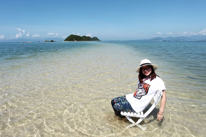 Điệp Sơn: Điệp sơn là một dãy gồm 3 hòn đảo nhỏ, nằm trong vùng biển thuộc vịnh Vân Phong, tỉnh Khánh Hòa. Ba đảo bao gồm Hòn Bịp - Hòn Giữa - Hòn Đuốc nối với nhau đường cát tự nhiên dài khoảng 700 m, rộng chưa đến 1 m. Thủy triều xuống, du khách có thể đi bộ qua lòng biển để đến các đảo lân cận mà không cần phải sử dụng bất cứ đồ bảo hộ nào. Và khi thủy triều lên, con đường lại bị vùi lấp dưới mặt nước xanh thăm thẳm vô cùng ảo diệu.