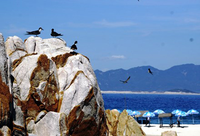 Đảo Yến: Đảo Yến hay còn biết đến với một bãi tắm đôi có một không hai ở Việt Nam. Cùng một bờ cát trắng mịn, nhưng có tận 2 bãi tắm nước trong vắt ở hai bên với một bên là nóng, một bên là lạnh - do các dòng chảy tạo nên. Để đến Đảo Yến, du khách pải tới cảng Cầu Đà, Nha Trang mua vé tàu du lịch tới đây. Bên bờ biển còn có ngọn núi Du Hạ, cao khoảng 90 m. Ở đây bạn có thể chiêm ngưỡng khung cảnh xung quanh và tận hưởng không khí biển trời trong lành. Đảo Yến còn là nơi sinh sống, làm tổ của hàng ngàn cá thể chim Yến với trữ lượng khai thác lớn ở Việt Nam.