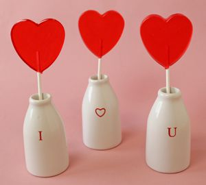 Đây đúng chuẩn là chiếc kẹo mút giành cho Lễ tình nhân thực thụ. Mỗi chiếc kẹo mút trái tim được cắm vào những chiếc bình gốm sứ bé xíu và xếp thành dòng chữ “I LOVE YOU” quả thật là một ý tưởng sáng tạo. Cứ đến ngày 14/2, thay vì hoa và sô cô la, các anh chàng cứ tặng món quà xinh xắn như thế này thì bảo sao một nửa của mình lại không cảm động cơ chứ!